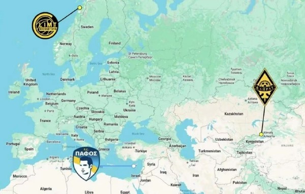 本届欧冠附加赛上,来自哈萨克斯坦的阿拉木图凯拉特、挪威的博德闪耀和塞浦路斯的帕福斯分别淘汰了苏超凯尔特人、奥地利的格拉茨风暴和塞尔维亚的贝尔格莱德红星晋级正赛。这三支球队,恰好来自欧冠版图的最东面、北面和南面。在打完皇马后,阿拉木图凯拉特和帕福斯会有一场直面对话,让塞浦路斯球迷体验一把天南地北的奔波之苦。