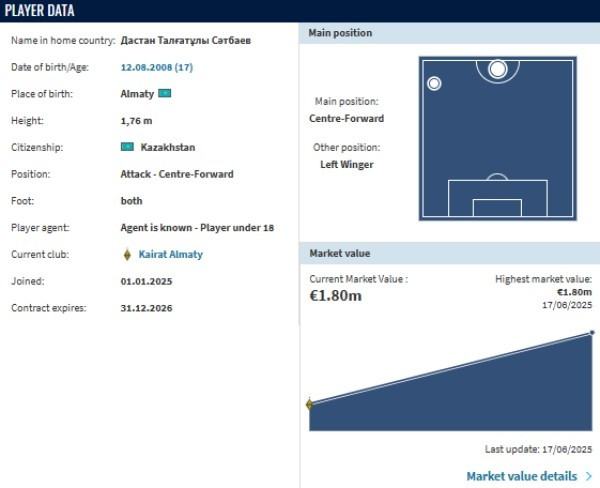 阿拉木图凯拉特的成功,跟他们的青训基础有很大的关系。年仅17岁的萨特帕耶夫是球队头号球星,更是在本赛季的欧冠资格赛上创造纪录,成为欧冠历史最年轻的进球者。他已经被切尔西提前预定,未来应该会登陆英超。